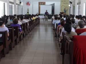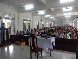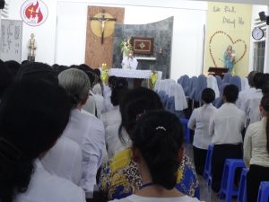 Theo thông lệ hàng năm, Ban Điều Hành Hiệp hội Thánh Thể của các giáo xứ thuộc 08 giáo phận : Xuân Lộc, Bà Rịa, Sài Gòn, Long Xuyên, Ban Mê Thuột, Kontum, Phan Thiết, Đà Lạt lại tấp nập kéo về Nhà Mẹ – Tỉnh Dòng Nữ Tỳ Thánh Thể, Biên Hòa, Đồng Nai. Năm nay, hai ngày Thường Huấn vào thứ Bảy và Chúa Nhật, ngày 20 và 21 trong tháng Mân Côi, tháng kính Đức Mẹ. Chiều hôm trước đã có một số anh chị em ở Kontum, Ban Mê Thuột, Bà Rịa đến trước để thăm nhà dòng, tham quan Nhà Truyền Thống và cũng để nghỉ ngơi, lấy tinh thần cho các buổi học hỏi, hội họp hôm sau. Số tham dự lên đến 213 thành viên.