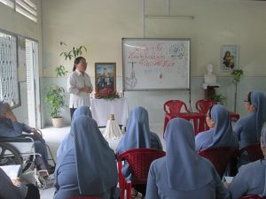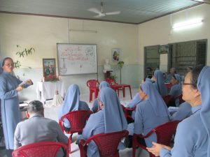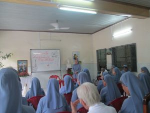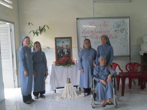 Hiệp thông với toàn thể Giáo Hội Việt Nam mừng Năm Thánh các Thánh Tử Đạo Việt Nam, quý Dì hưu Dòng Nữ Tỳ Thánh Thể đã hăng say đọc và tìm hiểu về hạnh các Thánh Tử Đạo. Và hôm nay, ngày 23/11/2018, trong bầu khí của ngày vọng mừng kính trọng thể Các Thánh Tử Đạo Việt Nam, Dì Anna Lệ Diễm đã tổ chức Hội Thi Các Thánh Tử Đạo Việt Nam cho quý Dì hưu trong hân hoan vui mừng. Từ Dì Agata Phúc đã lẫn, đến Dì Maria Năng ngồi trên xe lăn, Dì Lucia Mặc Linh và Dì M.Rosa Kim Tuyến đang đau cũng ngồi xe lăn cùng tất cả quý Dì đều tham gia cách phấn khởi.