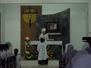 Chính vì thế, chiều hôm nay, chị em Nữ Tỳ Thánh Thể và một số gia đình thân quen với cộng đoàn, cùng sum họp trong ngôi nhà nguyện thân thương, để dâng Thánh Lễ tưởng niệm ngày Chúa Giêsu thiết lập Bí Tích Thánh Thể và cũng để lặp lại cử chỉ rửa chân mà Chúa đã thực hiện cho các môn đệ.