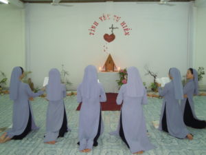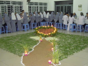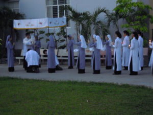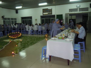 Kết thúc một ngày đầy tình yêu và tâm tình cảm mến. Chị em tĩnh lặng để đi vào tâm tình Vườn Dầu với Chúa. Sau bữa tiệc ly, từng nhóm chị em đã thay nhau tôn thờ Thánh Thể Chúa kéo dài cho đến nửa đêm.