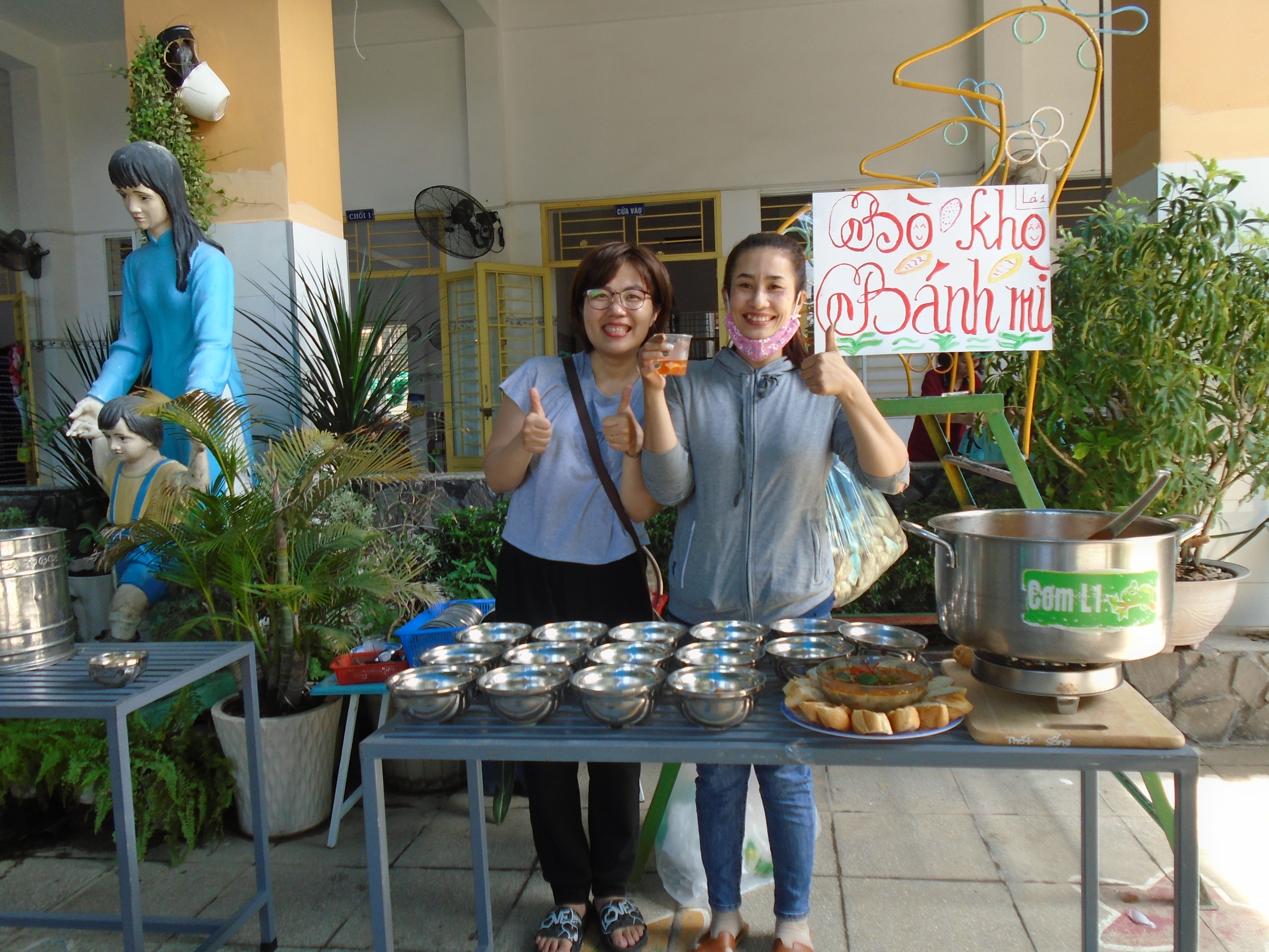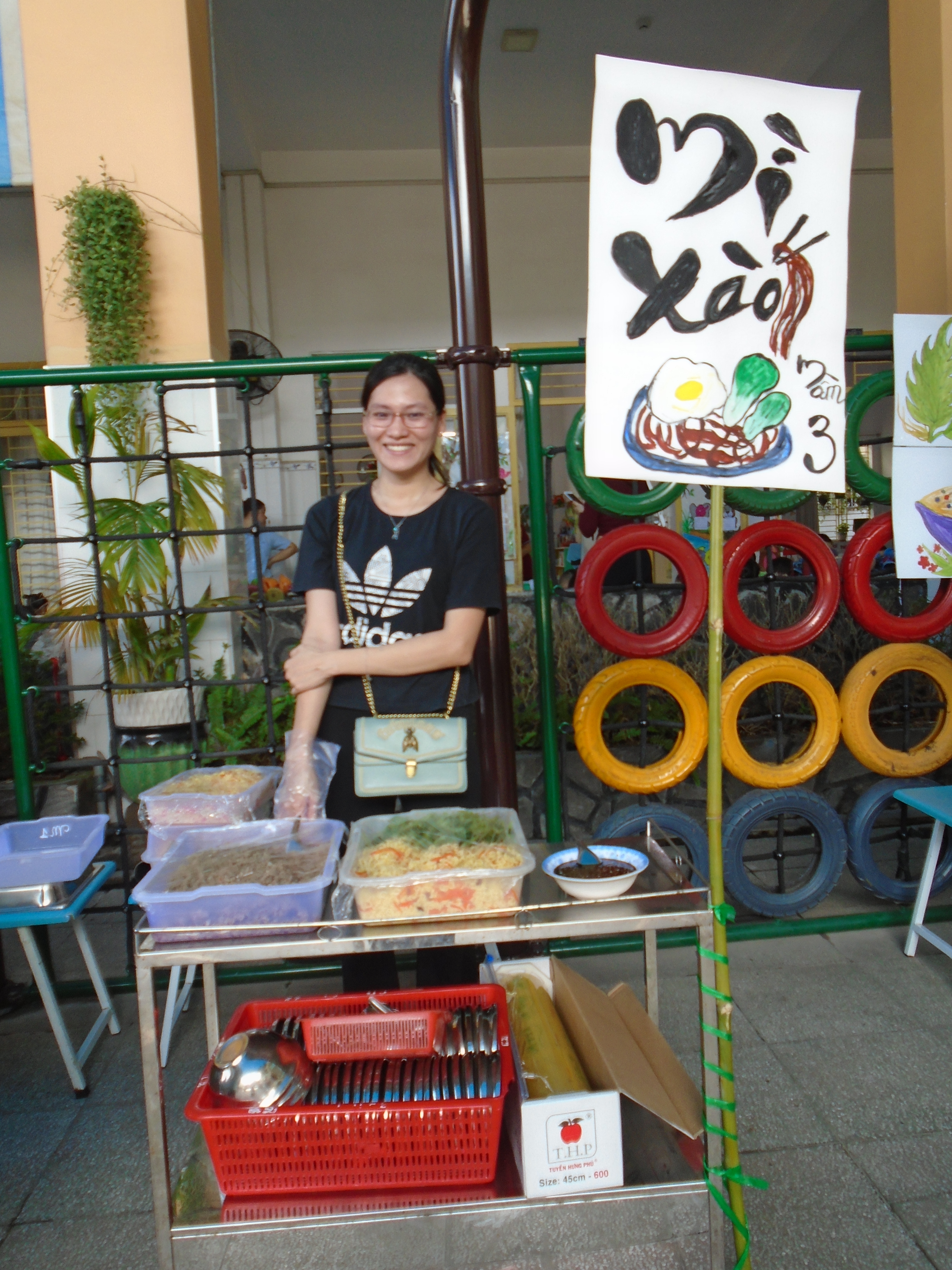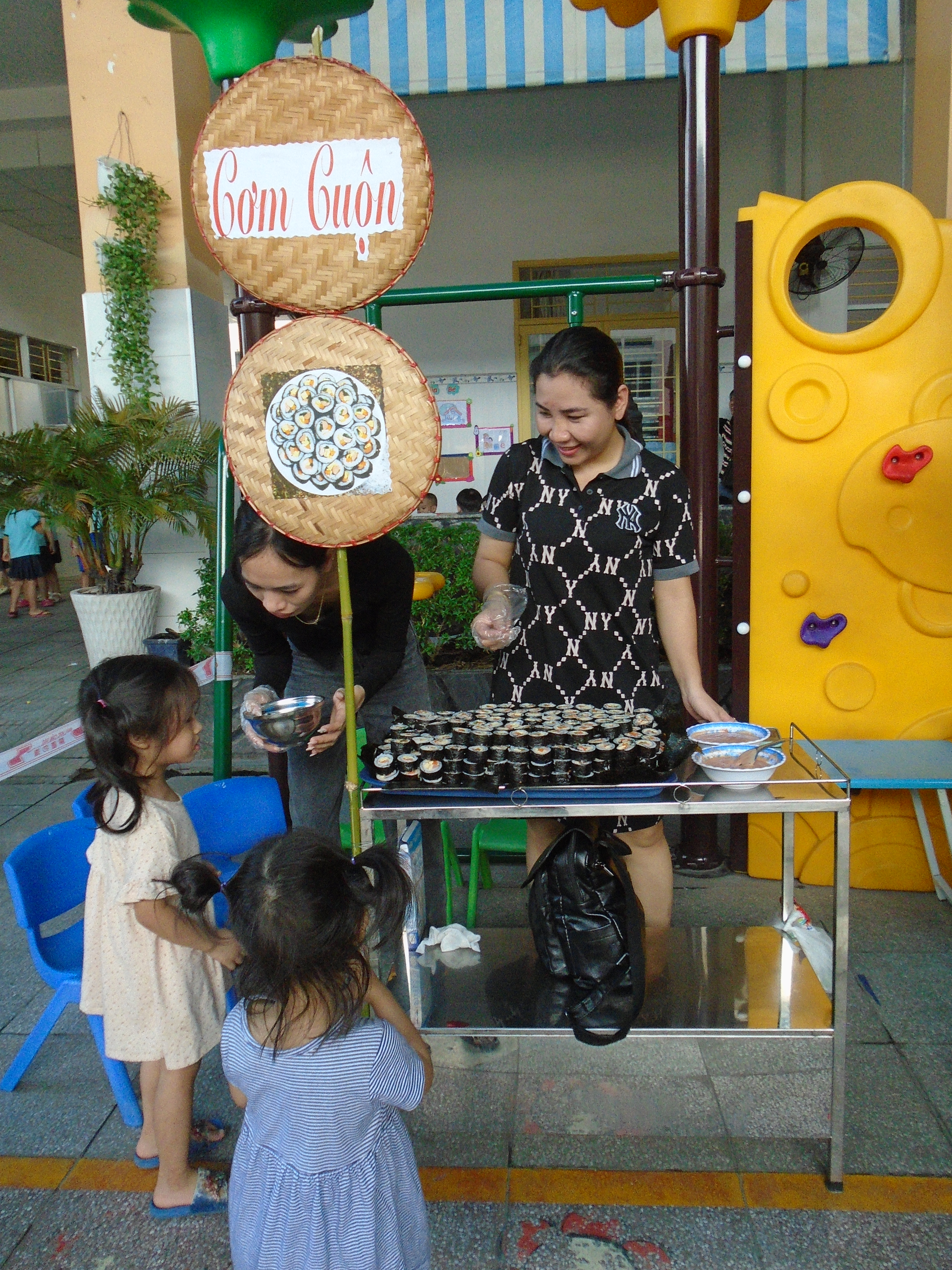 Còn ẩm thực: mỗi lớp 1 món, ban đại diện cha mẹ học sinh phụ giúp nấu các món ăn và phục vụ quầy ăn, cũng có lớp phụ huynh còn trợ giúp cả khâu trang trí bảng tên món ăn…một không khí rất vui nhộn và đầy yêu thương