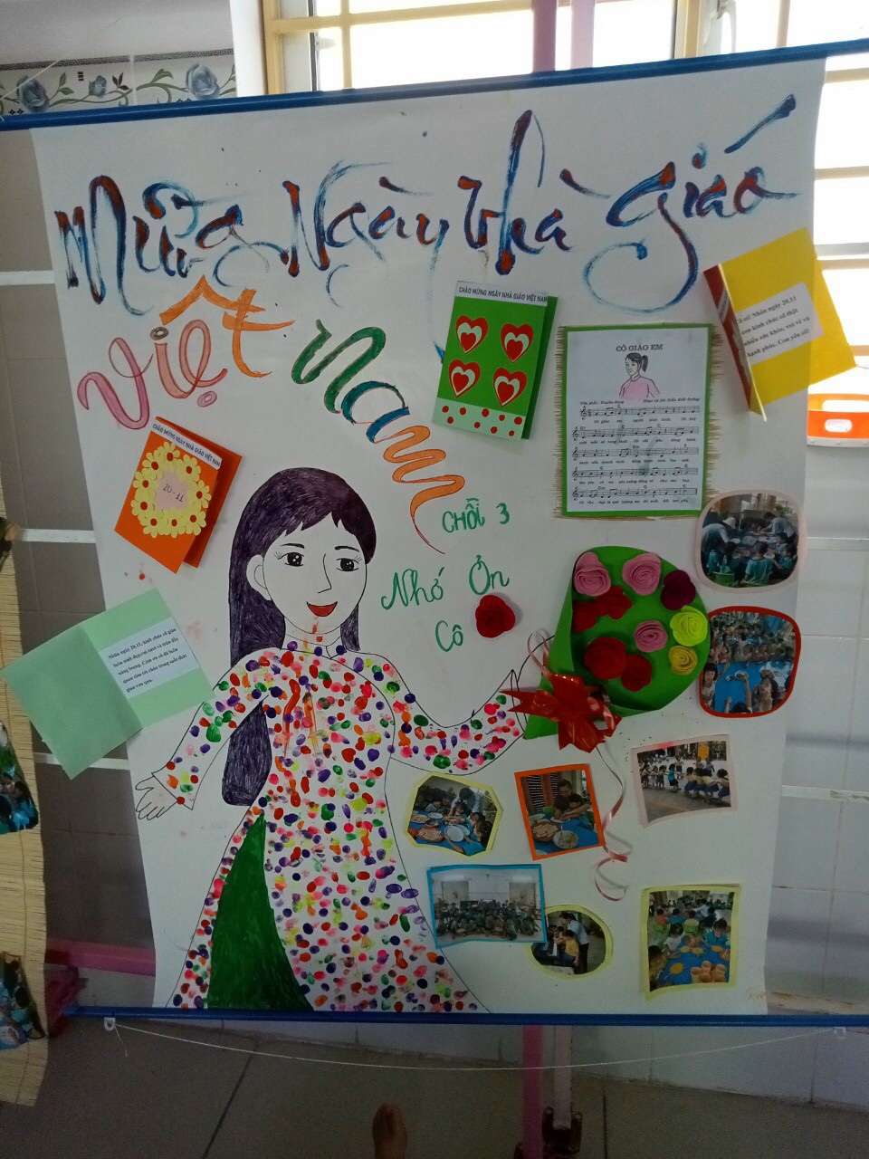 Khi nghe cô hiệu trưởng thông báo tổ chức ngày 20/11 với hoạt động làm báo tường và ẩm thực ăn buffet, làm cho bầu khí của các lớp học sôi động hẳn lên, cô và trò liền bắt tay vào công việc ngay.