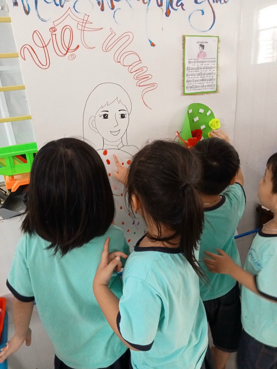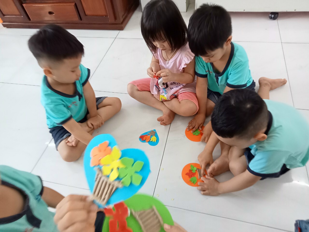 Sáng nay, cuộc thi bắt đầu. Đa số trẻ được làm với nhiều hình thức khác nhau: dán, cắt, tô màu, vẽ, viết lời chúc,…mỗi lớp đều có nét sáng tạo riêng.
