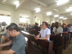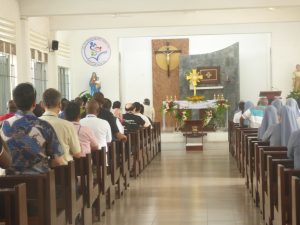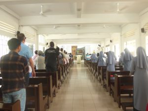 Từ sáng sớm, quý chị em Nữ Tỳ đã chuẩn bị từ Nguyện đường đến phòng hội và các món ăn thật chu đáo. Với tinh thần hiếu khách và nhất là để đón những người anh em con cùng Tổ Phụ từ khắp các nước đến thăm, quý chị ở một số cộng đoàn gần cũng trở về với tâm tình hân hoan chào đón. Đúng 11g 15, Cha Tổng quyền, Cha nguyên Tổng quyền, Cha Giám tỉnh-Tỉnh Dòng Việt Nam, quý Cha ban Tổng cố vấn, quý cha, quý Thầy thành viên Tổng Tu nghị và quý thông dịch viên đã tiến vào nguyện đường để cùng cất cao lời ca Tantum Ergo Sacramentum trước Thánh Thể Chúa. Sau đó Cha Giám Tỉnh đọc lời nguyện và ban phép lành Thánh Thể.