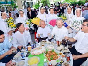 Sau Thánh lễ, quý Cha, quý Tu sĩ và quý thân nhân, quý khách đã chung chia niềm vui với Tỉnh dòng trong bữa tiệc thân ái chan hòa tình thương mà mọi người đã dành cho quý chị em Tân khấn sinh. Hội Dòng Nữ Tỳ Thánh Thể hôm nay có thêm các Nữ Tỳ dễ thương đầy nhiệt tâm để tôn thờ Thánh Thể và phục vụ Hội Thánh.