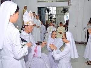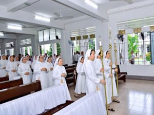 Lời ca du dương đưa cộng đoàn vào tâm tình tạ ơn Thiên Chúa, hôm nay ngày 31/5/ 2014 – ngày Lễ Đức Maria Thăm Viếng, Tỉnh Dòng Nữ Tỳ Thánh Thể hân hoan mừng Lễ Vĩnh khấn và Tiên khấn của sáu chị em. Qua một chặng đường dài theo Chúa và được huấn luyện, chị em đã can đảm và quảng đại đáp lại tiếng Chúa qua lời tuyên khấn.