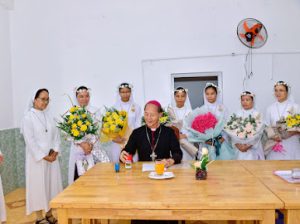 Đức Cha đã chúc mừng Hội Dòng và nhắn nhủ với các Tân khấn sinh về “Ba thành phần làm nên Ơn gọi: + Giáo Hội-các giáo xứ, các Cha xứ. + Gia đình- Cha mẹ, người thân. + Chính mình- đáp lại tiếng Chúa bằng cảm nghiệm hàng ngày tình yêu của Chúa. Xin cho mỗi chị em khi nói đến đời sống Thánh hiến là nói đến lòng Mến-tình yêu dâng hiến cả cuộc đời và nhờ ơn Chúa giúp để tín trung theo Chúa Giêsu Thánh Thể đến trọn đời.”