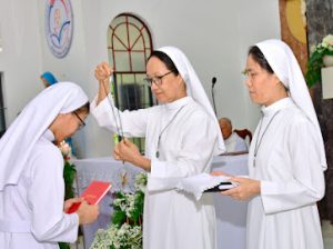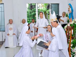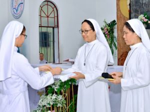 Nghi thức tuyên khấn kết thúc, quý Dì đại diện chị em trong Tỉnh dòng chúc mừng và tiếp nhận các Tân khấn sinh với lời ca vang của ca đoàn “Trong tình yêu Chúa là Cha, chị em ta hãy mến thương nhau… mến thương trong tình nghĩa đậm đà…”