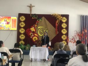 Dì Giám Tỉnh có những lời chia sẻ với chị em trong Tỉnh Dòng và chúc mừng Năm Mới, mừng tuổi mới chị em và tặng bánh Tét cho các cộng đoàn.