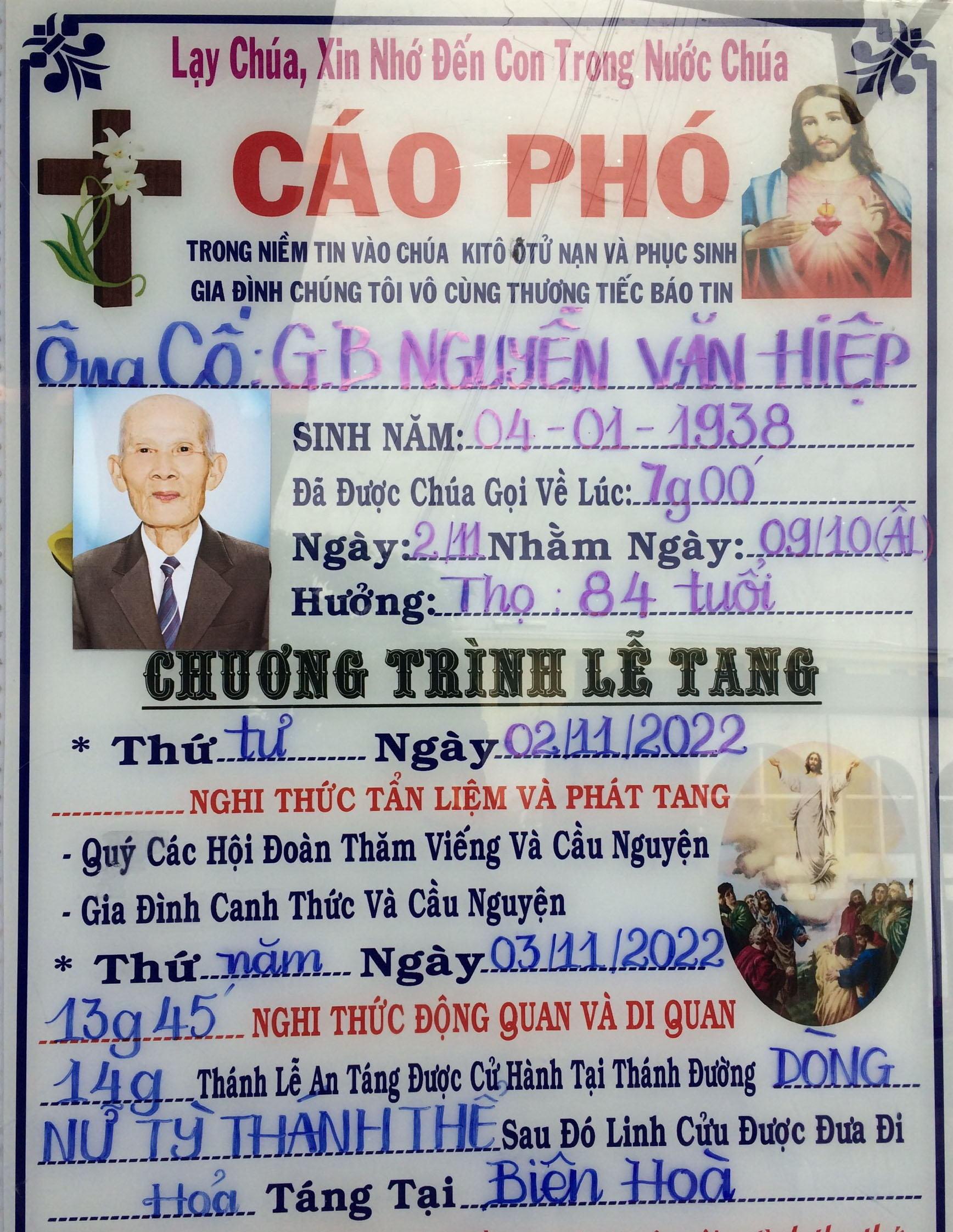 Ai tín Đăng bởi fiat - 02/11/2022 Trong tình hiệp thông xin cầu nguyện cho linh hồn ông cố Gioan Baotixita Nguyễn Văn Hiệp thân phụ của chị Têrêsa Nguyễn Thị Phương Anh ( Ánh)