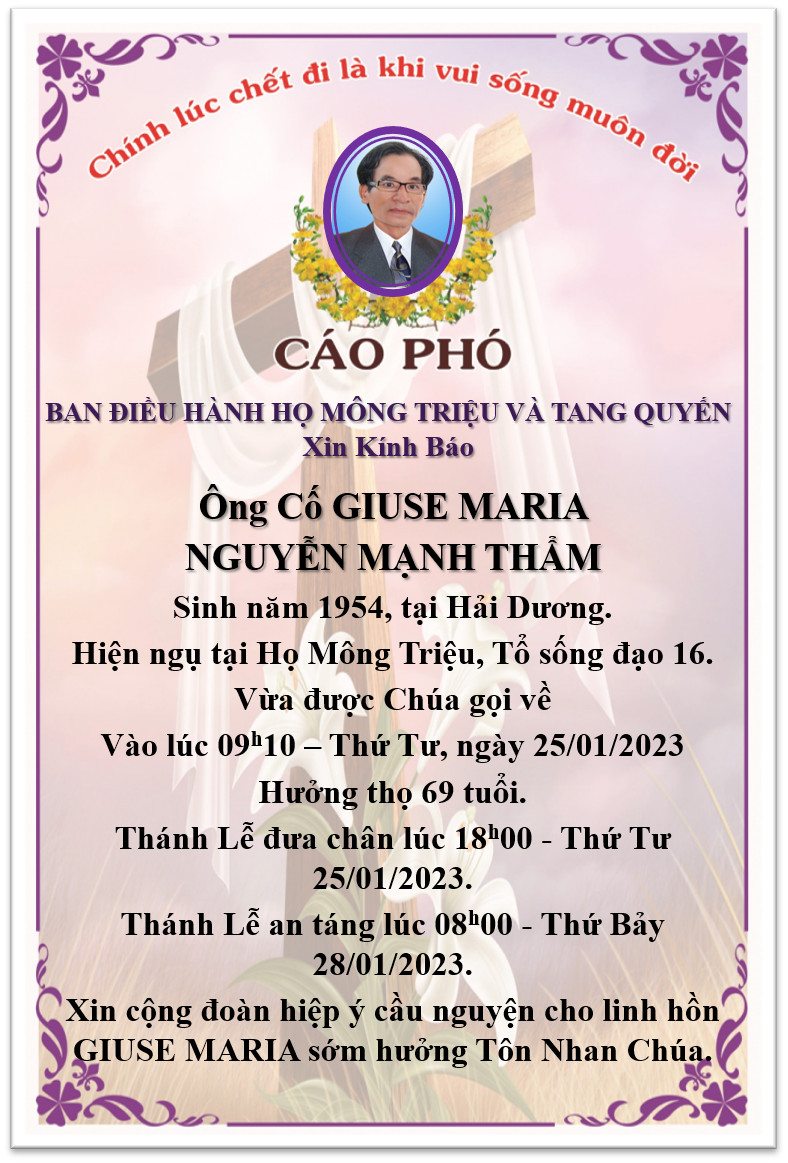 Chúc mừng Bổn mạng Cộng Đoàn Chàm Trẹt và Lớp Đồng…