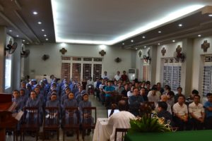 2h30phút chúng tôi quy tụ trong nhà nguyện ấm cúng để nghe cha đặc trách về huấn luyện của ban tổng quyền chia sẻ. Cha nói với chúng tôi về đề tài : “tương quan thiêng liêng giữa 2 dòng nam và nữ”. Quả thật qua bài chia sẻ của Cha đã giúp tôi nhận thức rõ hơn về mối tương quan với nhau : không chỉ là thiêng liêng mà có thêm mối tương quan gia đình. Chúng tôi được liên đới với nhau bởi có chung một nguồn gốc là Cha Thánh tổ phụ Eymard, từ đó giúp chúng tôi suy nghĩ làm thế nào để có sự liên đới hữu hiệu hơn bằng việc giao lưu, học hỏi, để có thể bổ sung cho nhau.