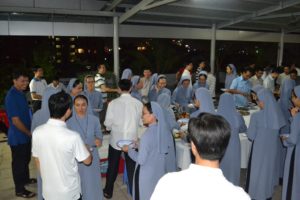 1giờ 30 chúng tôi khởi hành qua học viện Dòng Thánh thể. Một buổi chiều đáng ghi nhớ, bởi đã từ rất lâu anh em chúng tôi không có dịp gặp gỡ giao lưu. Chúng tôi được các Cha – Thầy tiếp đón ân cần, nồng hậu, chuẩn bị rất chu đáo với trà – sữa (các thầy tự làm), trái cây…