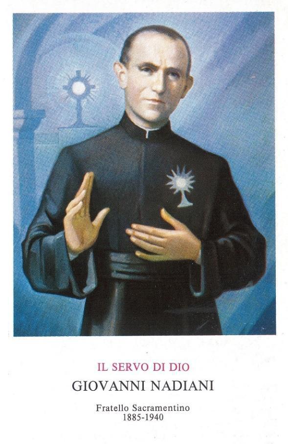 Vào ngày 11 tháng 06 năm 2019, Đức Thánh Cha Phanxicô đã tiếp kiến Đức Hồng Y khả kính Angelo Becciu, Tổng trưởng của Bộ phong Thánh. Trong suốt buổi tiếp kiến đó, Đức Giáo hoàng đã trao quyền cho Bộ Phong Thánh để ban hành những Sắc lệnh, trong đó có sắc lệnh liên quan đến những nhân đức anh dũng của Tôi tớ Chúa Giovanni Nadiani, một tu huynh của Dòng các linh mục Thánh Thể, sinh tại Santa Maria Nuova (Italia) vào ngày 20 tháng 02 năm 1885 và qua đời tại Bergamo (Italia) vào ngày 6 tháng Giêng năm 1940.