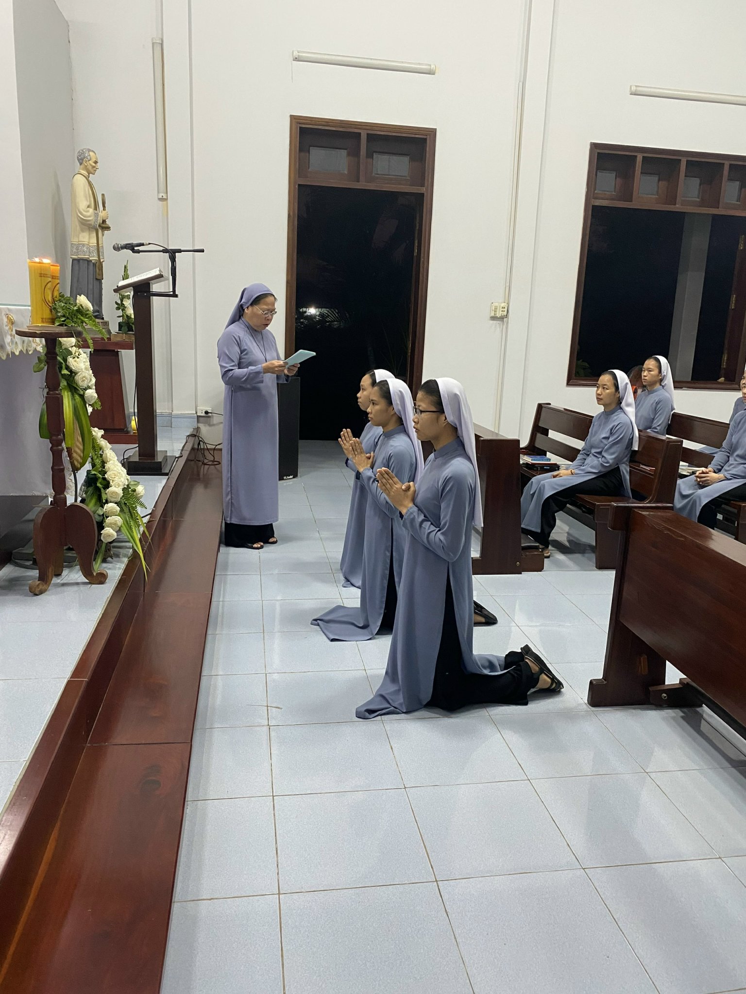 Lạy Chúa, xin cho con luôn cảm nghiệm được sự bình an, hạnh phúc trong đời dâng hiến và luôn giữ mãi lệnh truyền Tin Mừng, hiểu luật Dòng, sống yêu thương gắn bó với chị em như một gia đình và nhất là bước theo Chúa Kitô trong đời sống Thánh Thể.