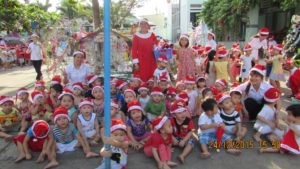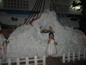 Cũng như mọi năm, đêm sinh nhật Chúa, bố mẹ, cô giáo, và các bé đến sân trường thăm Chúa Hài nhi, ngắm ngôi nhà mà mình đã góp phần dựng nên, cầu nguyện và chụp ảnh. Các chúa nét mặt hân hoan, tựa như nét mặt của chúa Hài Đồng đang nằm trong máng cỏ vậy.