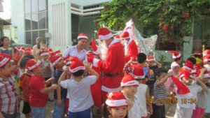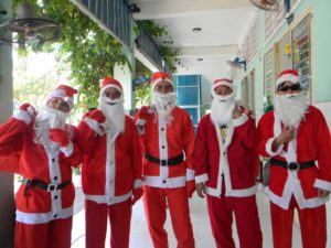 Các bố hóa thân làm ông già noel phát quà cho các cháu