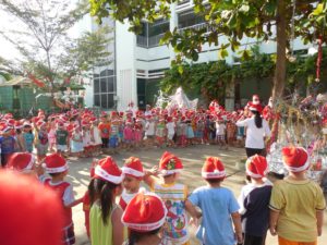 Ban giám hiệu nhà trường phổ biến phong trào “ Mỗi lớp dựng nhà đón Chúa giáng sinh”. Mái ấm nào có ý nghĩa nhất sẽ được khen thưởng. Tuy nhiên, phần thưởng không là mục tiêu của cô và trò; nhưng chính niềm hân hoan và hy vọng đón mừng Chúa Giáng Sinh vào ngôi nhà nhỏ ( hang đá) của lớp mình, mới là mục tiêu chính. Hy vọng lớp học nhỏ sẽ tràn đầy bình an và niềm vui của Chúa Hài Đồng. Cô và trò, cả sự cộng tác ít nhiều của quý ba mẹ, cùng xây nhà cho Chúa Hài Đồng trong niềm vui vẻ ( dù rất nhiều phụ huynh không cùng tôn giáo). Bởi chăng mỗi người đều biết rằng: Ngôi nhà của Tình Yêu chỉ có ý nghĩa khi và chỉ khi ngôi nhà ấy được xây bởi những cử chỉ và thái độ của tình yêu thương mà thôi.