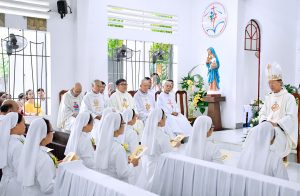 Thánh Lễ Mừng Ngân Khánh được Đức Cha Gioan-Giám Mục Giáo Phận Xuân Lộc cử hành  thật hân hoan sốt sắng, cùng với Cha Tổng Đại Diện Đaminh và rất đông quý Cha đồng tế đến từ khắp các Giáo phận. Đặc biệt có sự hiện diện của quý Ông bà cố đã cao niên và quý thân nhân, bạn hữu ở rất xa.