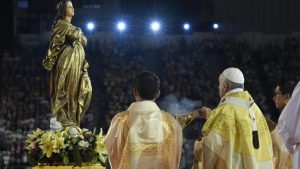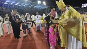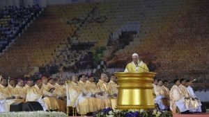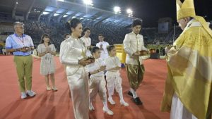 Chiều thứ Năm 21/11, sau cuộc gặp gỡ riêng với Quốc vương Rama X của Thái Lan, Đức Thánh Cha Phanxicô đã di chuyển bằng xe hơi đến Sân vận động Quốc gia Supachalasai ở quận Pathum Wan của thủ đô Bangkok, cách hoàng cung 4 cây số, để cử hành Thánh lễ.