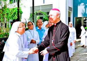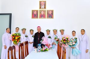Tạ ơn Chúa muôn đời về hồng ân Thánh Hiến Chúa ban cho chị em. Nguyện xin Chúa qua lời cầu bầu của Mẹ Thăm Viếng luôn chăm sóc gìn giữ quý chị tân khấn sinh và xin tình yêu Chúa luôn đụng chạm tâm lòng tất cả quý chị em Nữ tỳ Thánh Thể.