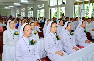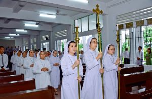 Thánh Lễ Khấn Dòng hôm nay được Đức Cha Giuse Đinh Đức Đạo – Nguyên Giám mục GP. Xuân Lộc chủ tế, cùng với quý Cha đồng tế: Cha Quản hạt Giáo hạt Tân Mai, Cha Tân Giám Tỉnh Dòng Thánh Thể, quý Cha trong ban Tổng cố vấn và quý Cha Dòng Thánh Thể, quý Cha xứ của các em Khấn sinh, quý Cha của các Dòng và quý Cha thân quen của Tỉnh Dòng. Cùng với sự hiện diện của quý Ông Bà Cố và thân nhân, quý Tu sĩ nam nữ và quý khách.