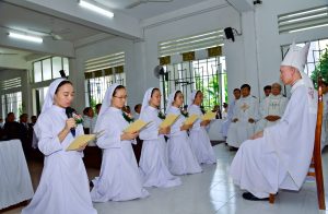 Sau bài giảng là nghi thức tuyên khấn lần đầu và tuyên khấn trọn đời thật trang nghiêm và sốt sắng. Qua lời tuyên khấn, nhận Luật sống, Huy hiệu Dòng, nhận nhẫn, ký sổ và những lời nguyện, từ đây các em được Chúa thánh hiến để thuộc trọn về Chúa.