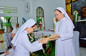 Cuối Thánh Lễ, chị Giám Tỉnh dâng lời cảm ơn Đức Cha Giuse và quý Cha, quý Tu sĩ, quý khách. Và đặc biệt là cảm ơn quý Ông bà Cố đã quảng đại dâng con cho Chúa.
