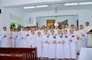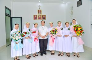 Cùng với M Maria, Chị em Nữ Tỳ Thánh Thể cất cao lời ca khen Thiên Chúa về Hồng ân lớn lao mà trong ngày Lễ Kính Đức Maria Thăm Viếng – 31/5/2022, Tỉnh Dòng đã đón nhận năm em Tiên Khấn và hai em Vĩnh Khấn.