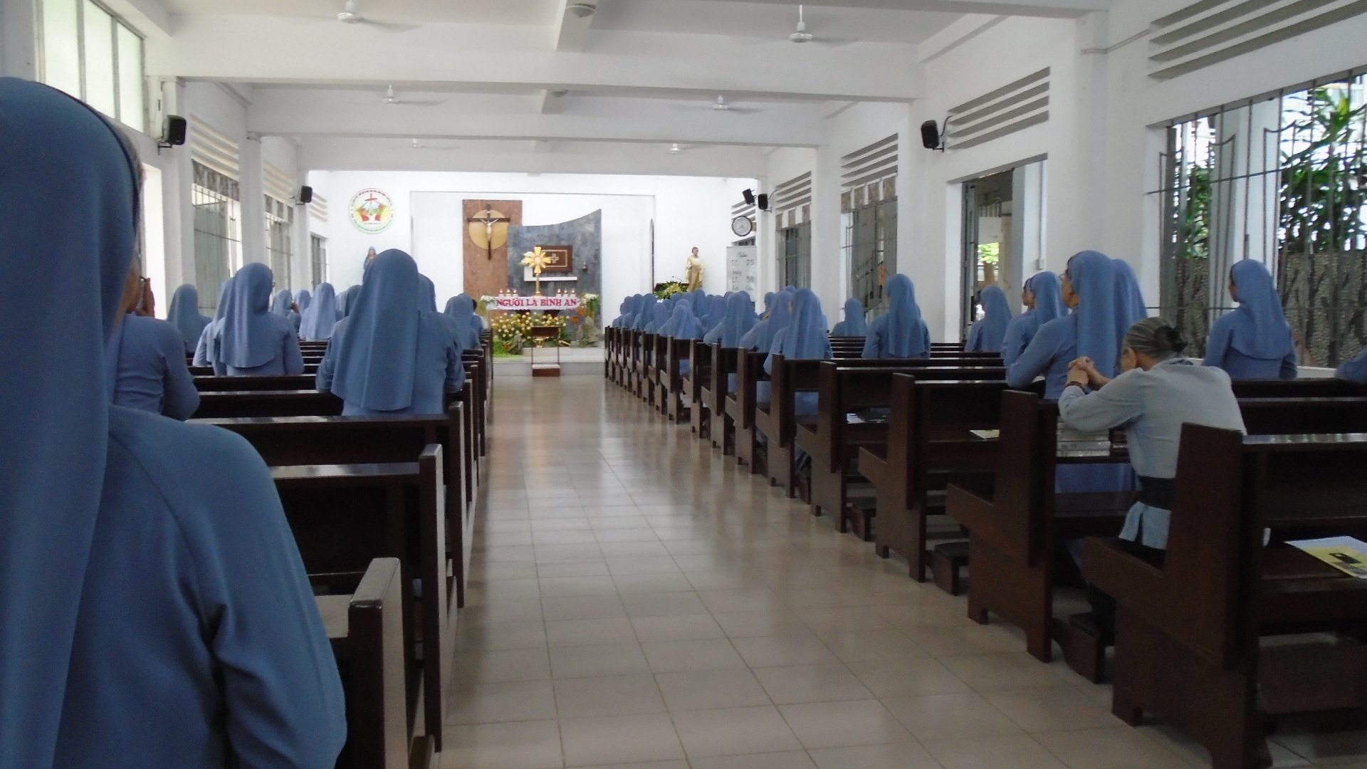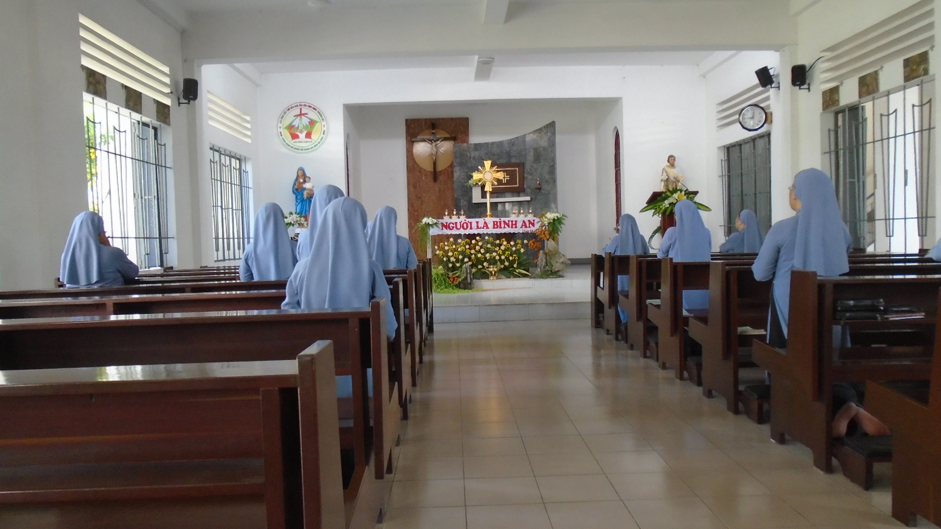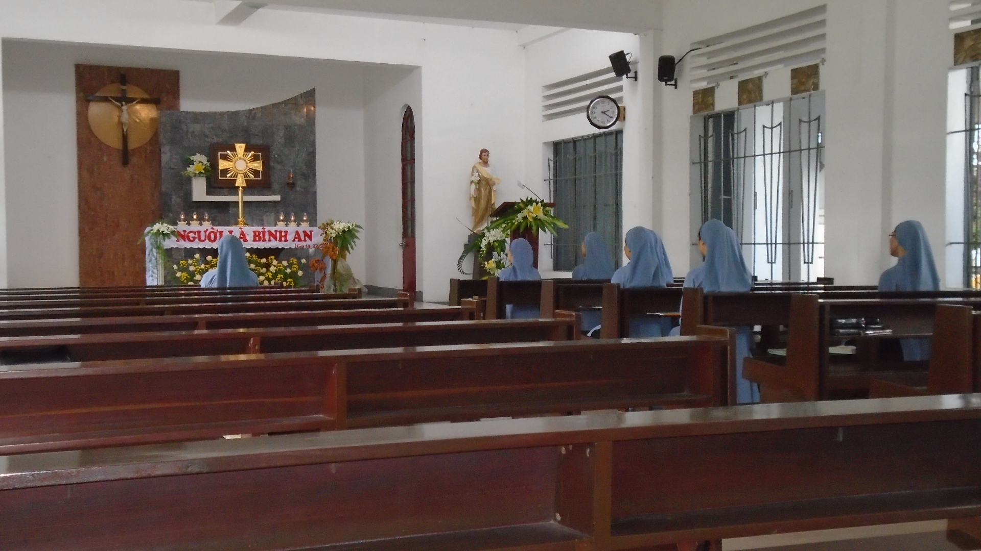 Hôm nay, Tỉnh dòng Nữ Tỳ Thánh Thể chầu thay giáo phận, thay cho toàn thế giới theo các ý chỉ của Đức Giáo Hoàng, Đức Cha Gioan. Chúng tôi chia phiên chầu lượt và giờ chầu lúc 9g dành cho các chị trung niên của Tỉnh dòng. Chị Giám Tỉnh cầu xin cho từng người chúng tôi có một đức tin mạnh mẽ, lòng cậy trông vững vàng, lòng mến Chúa tha thiết và biết phó thác vào tình yêu thương xót của Thiên Chúa. Trong giờ chầu, chúng tôi suy niệm Tin mừng của thánh Mác-cô chương 4, từ câu 35 đến câu 41. Tôi chìm đắm và soi mình trong bài Tin mừng này.