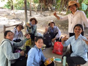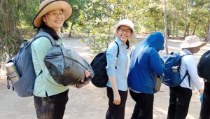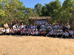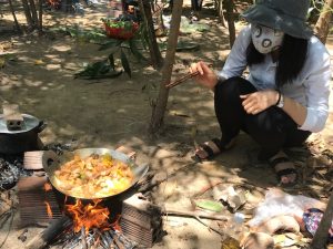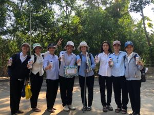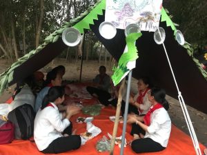 Khởi hành lúc 5g30, đoàn đã đến đất trại sau khoảng 30p trên xe. Nhưng đất trại nằm sâu bên trong và thời gian này không có nhiều nước nên chị em phải di chuyển đường bộ 200m với rất nhiều hành lý. Tuy nhiên với niềm hăng say của tuổi trẻ, mọi người đã đến nơi khi ánh bình minh bắt đầu chiếu toả.
