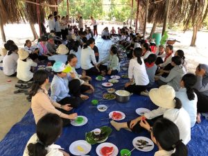 Tất cả các đội đều rất cố gắng để sáng tạo nấu và trang trí đẹp. Trại sinh và quý Sơ, quý thầy, quý anh chị có một bữa trưa thật phong phú và ngon miệng vui tươi. Bữa trưa kết thúc, trại sinh nhanh tay dọn vệ sinh lều trại và chén dĩa…