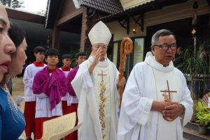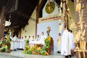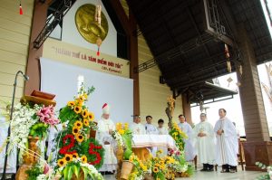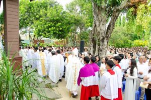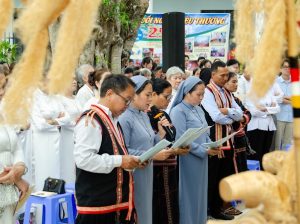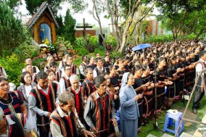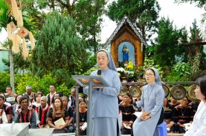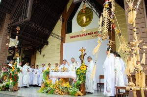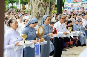 Thánh lễ kết thúc với phép lành trọng thể của Lễ Đức Mẹ Thánh Thể. Và cộng đoàn chung lời tạ ơn Chúa “Đến muôn đời con cảm tạ ơn Chúa-Kâo bơ-ni kơ Khua Yang hlong-lar…”