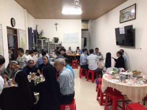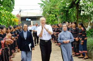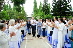 15g, chị em Nữ tỳ vui mừng chào đón Đức Cha Aloisio Nguyễn Hùng Vị, Giám mục Giáo phận Kontum, quý Cha và quý khách đến với cộng đoàn.
