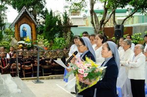 Sau Thánh lễ, Chị Giám Tỉnh dâng lời cảm ơn Đức Cha Giáo phận, quý Cha, quý Tu sĩ và toàn thể quý khách, quý thành viên Hiệp hội Thánh Thể đã thương hiệp dâng Thánh lễ tạ ơn với Tỉnh dòng và đặc biệt là với chị em Cộng đoàn Nữ tỳ Thánh Thể Pleiku hôm nay.