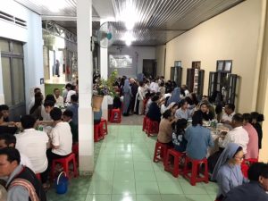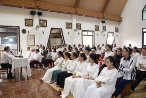 14g chiều, rất đông quý thành viên Hiệp hội Thánh Thể cũng đã hiện diện để mừng 20 năm thành lập và mừng lễ Bổn mạng. Tâm tình mừng lễ được chuẩn bị với giờ chia sẻ về Thánh Thể và Tước hiệu Đức Mẹ Thánh Thể, do Cha Inhaxio Nguyễn Quốc Hùng – Dòng Thánh Thể hướng dẫn cho quý thành viên người Kinh và Cha Giuse Phạm Quang Hợp – Dòng Chúa Cứu Thế chia sẻ cho quý thành viên đồng bào Gia-rai.