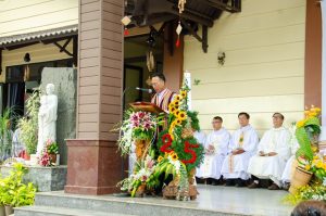 Sau ca nhập lễ, Đức Cha chủ tế đã nói lên tâm tình tạ ơn Chúa với hai Hội Dòng Thánh Thể và Nữ Tỳ Thánh Thể, trong ngày mừng lễ Đức Mẹ Thánh Thể Bổn mạng, với chị em cộng đoàn ở đây mừng ngân khánh và anh chị em Hiệp hội Thánh Thể mừng 20 năm thành lập, Đức Cha mời gọi mọi người chia sẻ niềm vui và cùng tạ ơn Chúa.