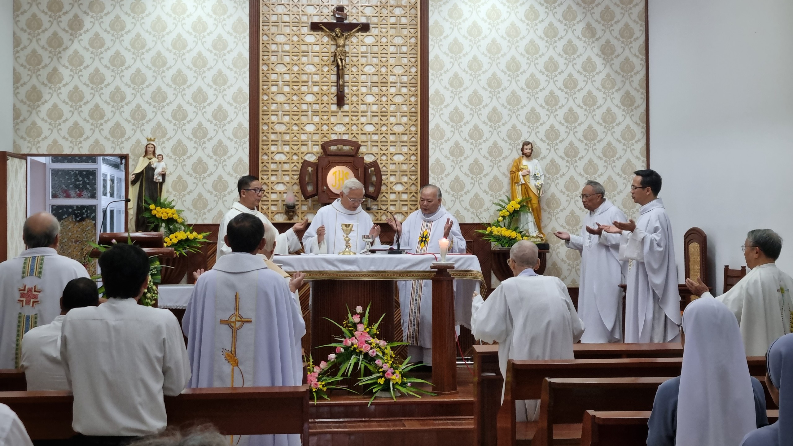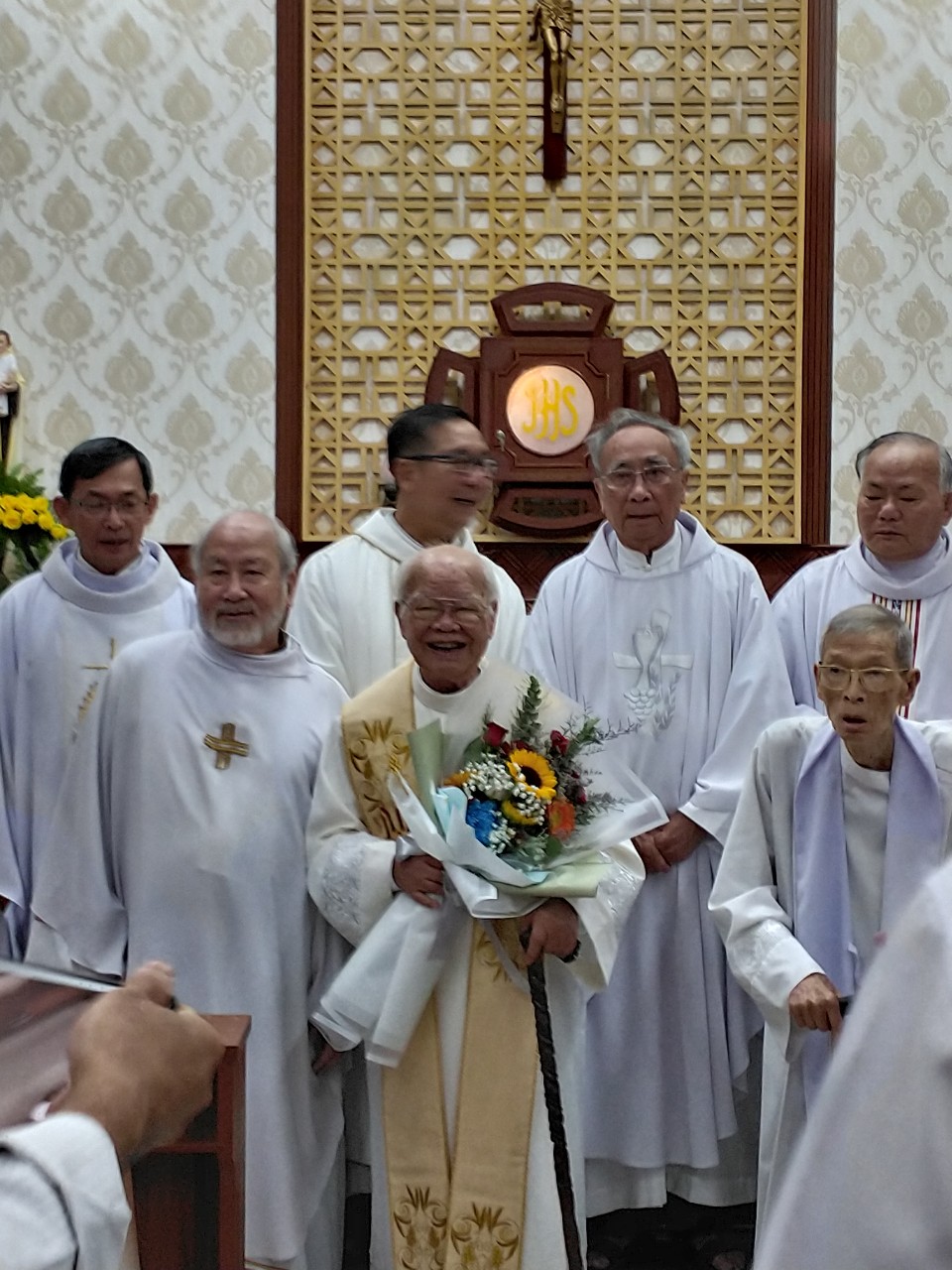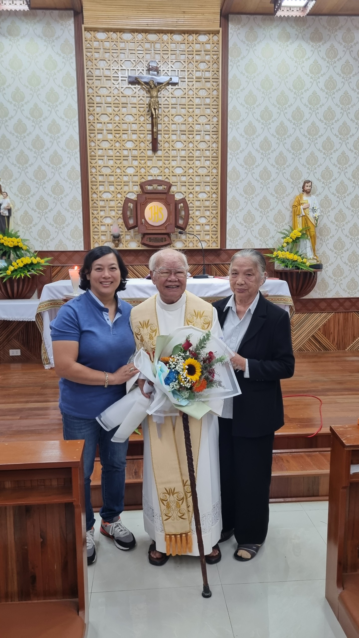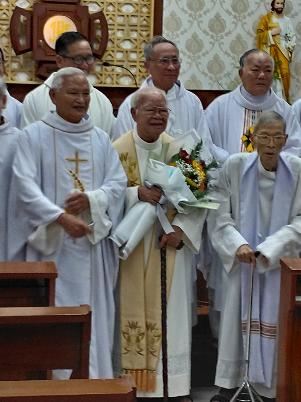 Hôm nay Tỉnh Dòng Nữ Tỳ Thánh Thể Việt Nam cùng tạ ơn Chúa với cha cố Giuse Bùi Đức Vượng về hồng ân 64 năm linh mục, các cộng đoàn trong Tỉnh dòng cùng hướng về nguyện đường nhà hưu của Quý cha Giáo phận Kontum, nơi Cha Cố, Quý Cha và một số chị em đại diện của Tỉnh Dòng cũng như một vài thân nhân của cha cố, cùng hiệp dâng thánh lễ tạ ơn Thiên Chúa đã luôn yêu thương và chăm sóc cha cố, bởi vì cha cố đã chọn Thiên Chúa là Gia Nghiệp như viên ngọc quý và đã dành tất cả những gì quý nhất cho Ngài. Trong bài giảng, cha Đaminh Đinh Quang Vinh, Quản hạt Giáo hạt Pleiku và cũng là cha chánh Giáo xứ Thánh Tâm đã lược lại những điểm nhấn trong cuộc đời ơn gọi của cha cố.