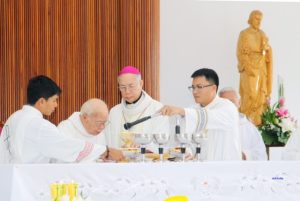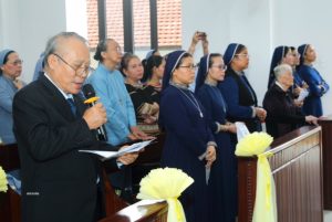 Hôm nay, mặc dù Đức Cha Aloisio Chủ tế, nhưng thật cảm động khi Cha cố Giuse dâng lên Thiên Chúa nhân lành những Lời nguyện Nhập lễ, Tiến lễ và Lời nguyện Hiệp lễ. Với tuổi cao 93, giọng nói của Cha vẫn rõ ràng và sức khỏe của Cha cũng khá tốt. Vì vậy, Cha cố đã tự soạn lời cảm ơn quý Đức Cha, quý Cha và mọi người. Cha đã nói lời cảm ơn và còn say sưa diễn giải về các Thánh của riêng ngài cảm nhận. Sau lời cảm ơn, Cha cố cùng với Cha cháu Benedicto Bình và Dì Giám Tỉnh Nữ Tỳ Thánh Thể, đã cất lên lời Ca Tình Tri Ân “Giữ gìn con Chúa ơi, vì Chúa là chốn con tựa nương tháng năm, trong cánh tay Người hồn con vui sống, tình yêu Chúa khoan dung bền vững muôn đời.” mà Cha cố đã cảm nghiệm sâu xa lời bài hát và từ lâu ngài đã rất thích.