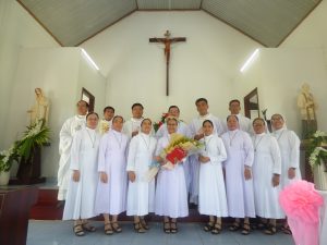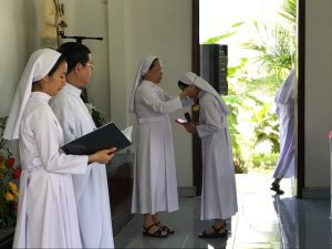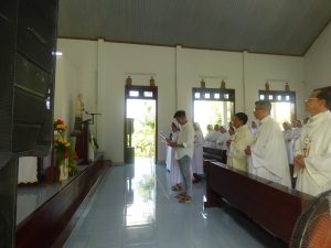 Thánh Lễ Khấn hôm nay được Cha Giuse Đỗ Thôn Nhu – Bề trên cộng đoàn Thánh Thể Hải Dương chủ tế, cùng đồng tế có Cha Giám đốc Tu viện Don Bosco Tân cang, Cha Chánh xứ Tân Cang và quý Cha Dòng Don Bosco. Trong tình liên đới của những người dâng hiến, quý Sư huynh Lasan Tân Cang và Phú Sơn cũng hiện diện để cầu nguyện cho em Anê Đê Ánh Trúc. Niềm vui đong đầy khi ông bà cố và quý thân nhân cũng đã đến với cộng đoàn rất sớm để cùng hiệp dâng Thánh Lễ khấn dòng và chung chia niềm vui trong bữa tiệc.