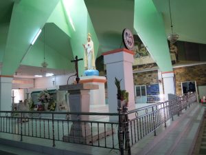 Cô chị chắp tay thành kính nhìn lên Đức Mẹ thì thầm khấn… Cậu bé lúc này tò mò nhìn chung quanh. Nó kéo tay áo chị nó hỏi: