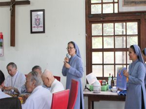 Thánh lễ Tạ ơn ngày 27.07.2018 vừa qua, nơi nhà chính của Tỉnh Dòng Nữ tỳ Thánh Thể Việt Nam, Giáo phận Xuân Lộc, đúng ngày kỷ niệm Ngọc Khánh Linh mục của cha cố Giuse 27/07/1958 – 27/7/2018, Tỉnh Dòng đã mừng: