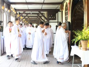 Thánh lễ tạ ơn 60 năm Linh mục Giuse Bùi Đức Vượng tại Tòa Giám mục Kon tum, được cử hành 9 giờ sáng hôm nay, ngày 2 tháng 8 năm 2018. Đức cha Chủ tế Aloisiô Nguyễn Hùng Vị cùng đồng tế với ngài có Đức Cha Phê rô Trần Thanh Chung và khoảng hơn 40 linh mục.