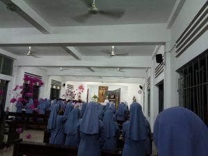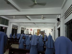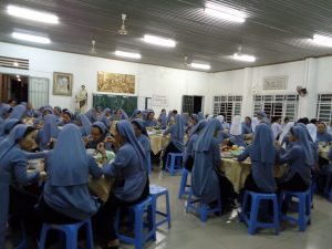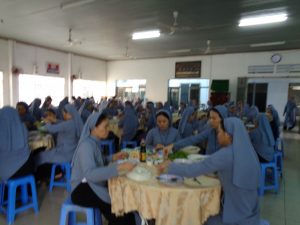 Sau Thánh lễ, mọi người cùng xuống phòng ăn để chung vui với nhau