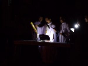 Tiếp theo Thánh Lễ Vọng Phục Sinh do cha Giuse Phạm Đình Ái -Giám Đốc Học viện Dòng Thánh Thể chủ tế và có các thầy Học viện Thánh Thể giúp lễ. Khi Tin Mừng (Exsultet) được Công bố, trong nhà nguyện thinh lặng hoàn toàn, không có tiếng máy quạt, cũng không một tiếng sột soạt. Lúc đó hình như trời đất cùng lẳng lặng để hợp với các Thần Thánh để ca mừng Chúa chiến thắng khải hoàn.