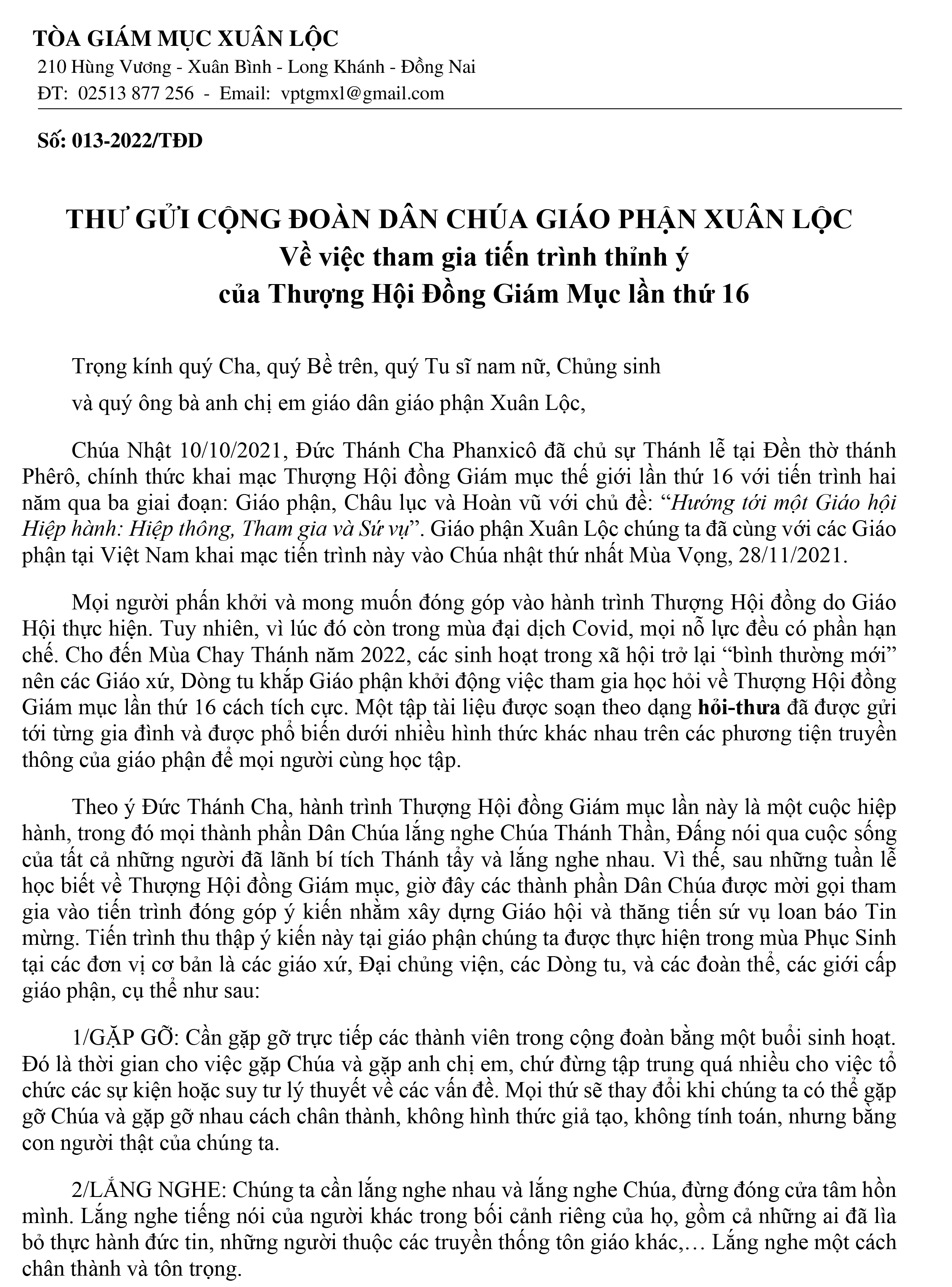 Lời Chủ Chăn Giáo phận tháng 5/2022