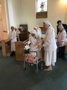 Sr rời khỏi cộng đoàn đến nay đã là hơn 9 tháng, và Sr chỉ trở về hai lần, một lần vào ngày Lễ An táng Mẹ Perko, và hôm nay, ngày 24/08, cộng đoàn tổ chức Lễ 50 Khấn Dòng. Ước nguyện của Sơ là tổ chức đơn giản, chỉ đôi ba người thật gần gũi, gia đình Sơ ở xa không đến được, có cặp vợ chồng trung thành đến thăm Sơ tuần hai lần và một cặp nữa là mang Chúa Giêsu Thánh Thể hằng ngày cho Sơ….