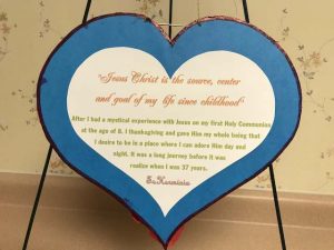Từ đó đến nay, các Sr và những người thân quen đến thăm Sr, ai ai cũng nhận thấy một điều : cho dù Bệnh viện thế nào, Viện dưỡng lão có ra sao, Sr cũng luôn đón nhận, không than phiền. Mỗi khi tôi đến thăm, Sr nói “đừng trở nên già nhé…. đến tuổi này rồi, đã vào đây ở thì còn có thể làm gì khác được hơn ?”. Thật sự mà nói tôi thấy thật thương Sr, cứ mỗi lần chuyển là nơi ở lại tệ hơn (cơ sở vật chất), tuy nhiên Sr vẫn luôn tìm thấy cái tốt đẹp nơi đó vì dường như Chúa cũng hằng lưu tâm đến người con bé nhỏ của Ngài : lúc thì có Y tá là người Philippin, lúc thì nhân viên, nên Sr cảm thấy được an ủi. Hơn nữa, Sr được Hiệp lễ hằng ngày (cũng đúng là do Chúa sắp đặt, nghe những người đến cho Sr rước lễ kể lại : ngay từ đầu họ không biết đó là Sr, mãi hơn hai tuần mới khám phá “đó là duyên phận với Nữ tỳ Thánh Thể”, nên khi Sr chuyển viện Dưỡng lão họ cũng theo đến tận nơi. Và cho đến khi tôi gặp Sr trước hai tuần Mừng Lễ Kim Khánh, Sr mới kể cho nghe câu chuyện về Ơn gọi của Sr và tôi hiểu ra rằng Ơn sủng từ ngày đó (Rước Lễ Lần Đầu) đã kéo dài cho đến ngày hôm nay.