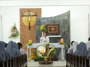 Mỗi lần ăn Bánh và uống Chén này, là anh em loan truyền việc Chúa chịu chết”.  Chúng ta cùng cầu xin cho anh chị em trong hai Hội Dòng Thánh Thể, Nữ tỳ Thánh Thể và Tu Hội Christi, Hiệp hội Thánh Thể, luôn biết khát khao rước Mình Thánh Chúa làm của ăn đích thực nuôi dưỡng linh hồn, biết chọn Thánh Thể làm tâm điểm đời mình và loan truyền Nước Thánh Thể cho muôn dân.