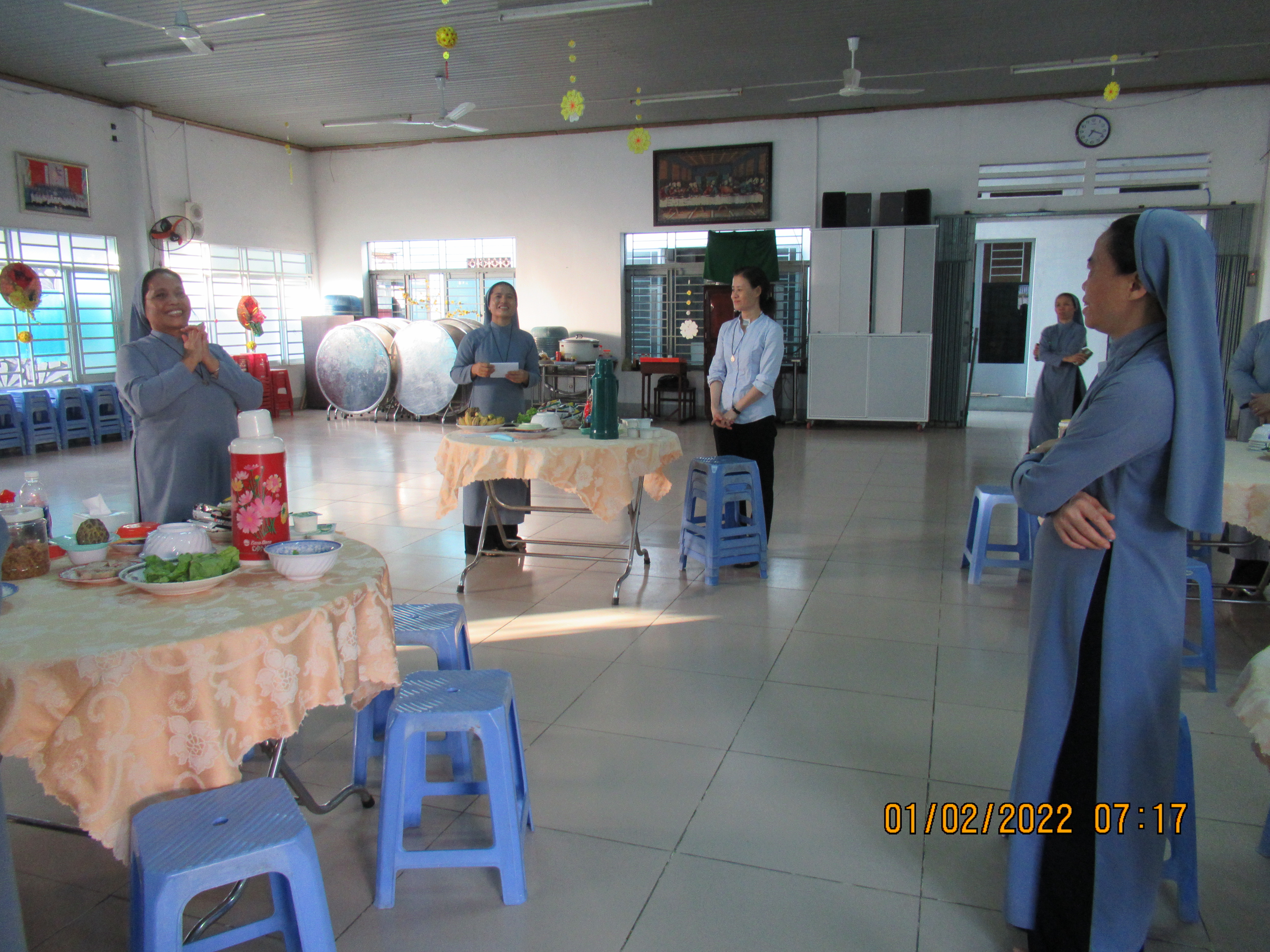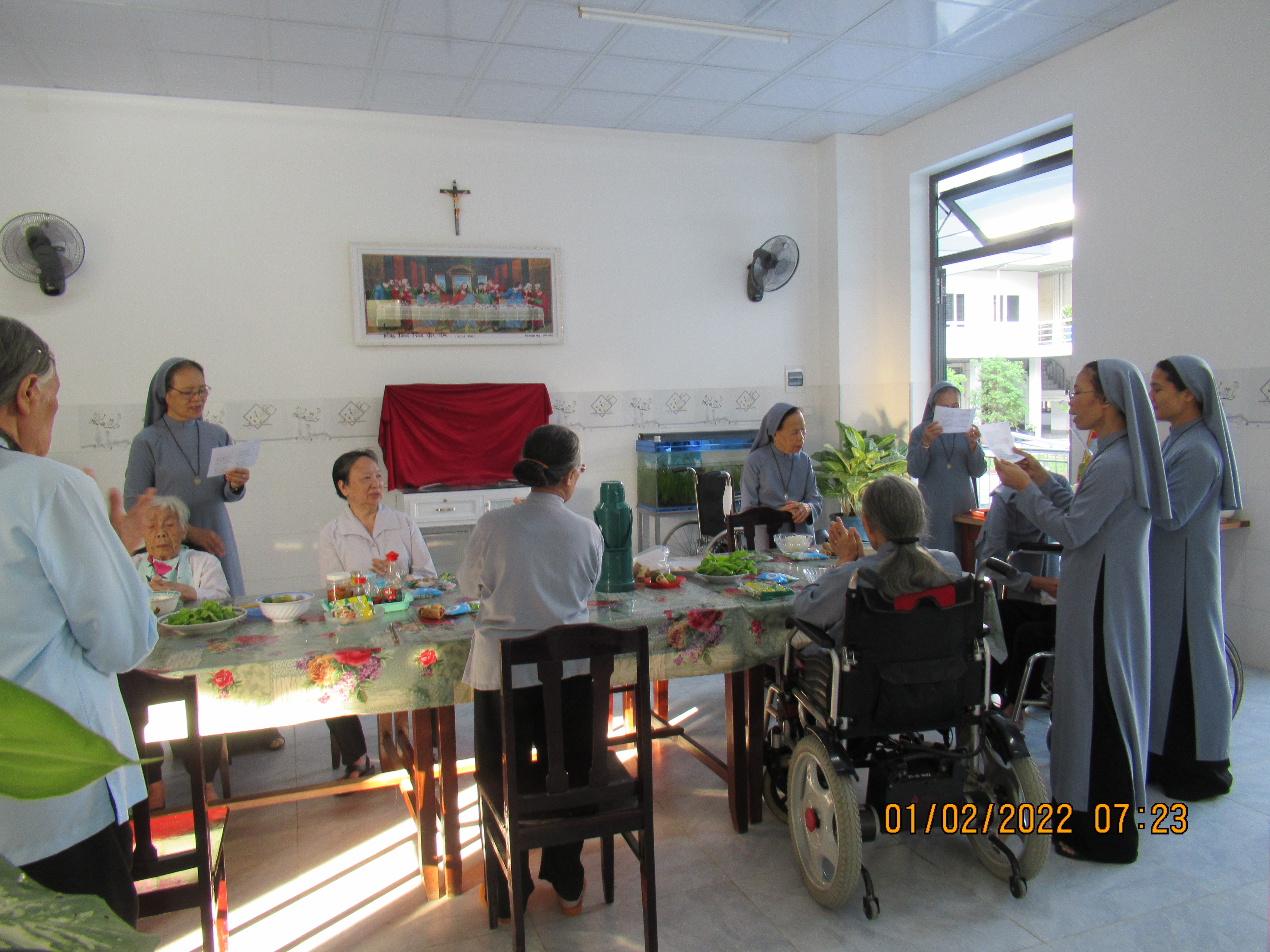 Sau thánh lễ, thăm cha cố và chúc tuổi mới cha cố trên trời với nghi thức giản dị là 1 bài hát Xuân. Mời mọi người nhìn hình là biết 1/2 số còn sót lại, nhưng dù thế nào chúng ta vẫn tạ ơn Chúa, vì còn được thấy nhau.